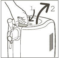 - Abra a tampa do BeerTender pressionando o painel de liberação na parte superior da máquina e remova a tampa do bico da torneira.