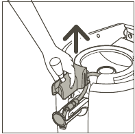 - Para evitar que as crianças usem o aparelho, você pode remover a alça da torneira. Para remover a alça, certifique-se de que ela esteja na posição vertical e puxe para cima.