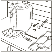 - Mantenha o aparelho a uma distância mínima (10 cm) do fogão, conforme mostrado no diagrama.
