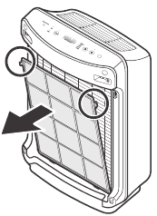 - Limpe as entradas de ar em ambos os lados e limpe o Pré-Filtro (Pre-Filter).