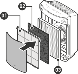 - Remova o Pré-Filtro, depois a embalagem de filtros atrás dele.