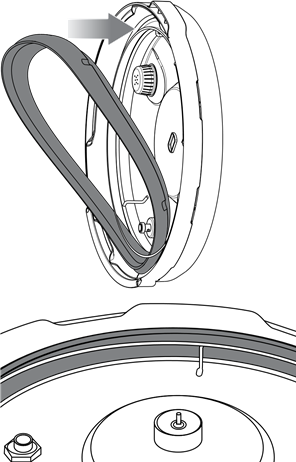 - Fixe a vedação de silicone limpa da tampa de volta ao redor do anel de arame na parte inferior da tampa. Ajuste a posição, se necessário, para que fique confortável e livre de quaisquer distorções.