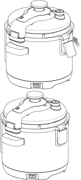 - Gire o botão da tampa no sentido anti-horário em direção ao gráfico de cadeado aberto. O alerta da panela soará quando a tampa destravar.