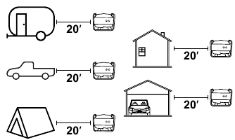Use a pelo menos 20 pés de distância de pessoas, animais e estruturas com a exaustão apontada para longe. O gerador ainda produzirá monóxido de carbono, mesmo ao queimar propano.
