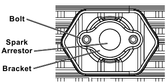 - Remova os dois parafusos (Bolts) que prendem o suporte do para-faíscas (Spark Arrestor Bracket) no lugar.