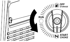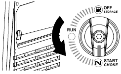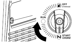 - Puxe a manopla de partida para distribuir o óleo no cilindro. Pare após uma ou duas rotações quando sentir o pistão iniciar o curso de compressão (quando começar a sentir resistência).