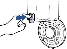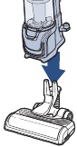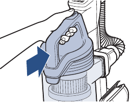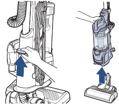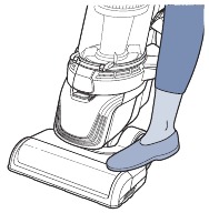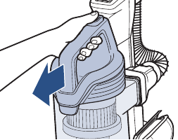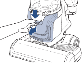 - Pressione o botão de liberação do tanque de sujeira e puxe para longe do aspirador.
