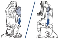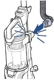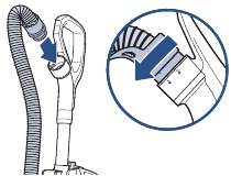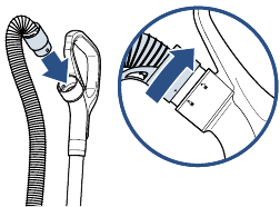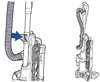 - Insira a mangueira no clipe da mangueira. A mangueira deve ficar no aspirador sem nenhuma torção.