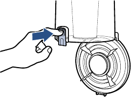 - Segure o tanque sobre uma lixeira e pressione o botão de esvaziar. Uma vez esvaziado, encaixe a parte inferior de volta no lugar.