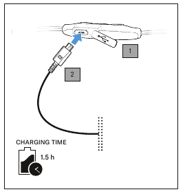 Um ciclo de carregamento completo leva cerca de 1,5 horas. Antes de usar os fones de ouvido pela primeira vez, carregue a bateria recarregável por um ciclo de carregamento completo sem interrupção.