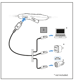 - Conecte o plugue micro-USB do cabo de carregamento à entrada micro-USB dos fones de ouvido.
