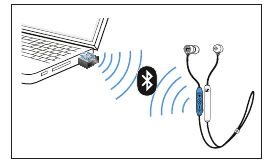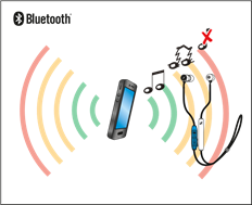 Chamadas e streaming sem fio são possíveis apenas no alcance de transmissão Bluetooth do seu smartphone. O alcance de transmissão depende muito das condições ambientais, como espessura da parede, composição da parede, etc. Com uma linha de visão livre, o alcance de transmissão da maioria dos smartphones e dispositivos Bluetooth é de até 10 metros.