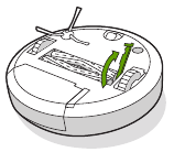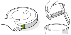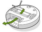 - Reinsira o filtro com as alças estriadas voltadas para fora. Coloque o compartimento de volta no robô.