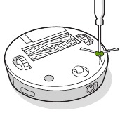 - Use uma moeda ou uma pequena chave de fenda para remover o parafuso que prende a Escova de Limpeza de Bordas no lugar.