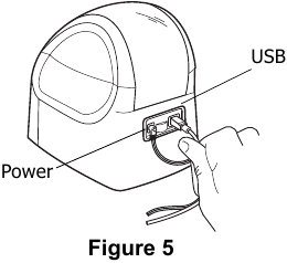 - Conecte o cabo USB à porta USB na parte traseira da impressora. Veja a Figura 5.