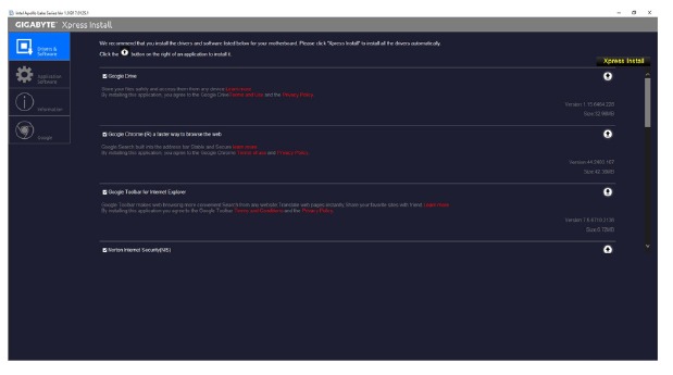 "Xpress Install" irá escanear automaticamente seu sistema e então listar todos os drivers que são recomendados para instalar. Você pode clicar no botão Xpress Install e "Xpress Install" irá instalar todos os drivers selecionados. Ou clique na seta