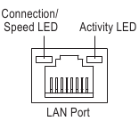 A porta LAN Gigabit Ethernet fornece conexão com a Internet a uma taxa de dados de até 1 Gbps. A seguir, descreve os estados dos LEDs da porta LAN.