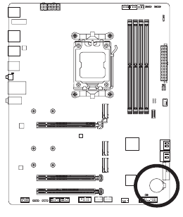 - Consulte as introduções do jumper da bateria/limpar CMOS, navegue até a página "BIOS Setup" (Configuração do BIOS) do site da GIGABYTE e procure por "Load Optimized Defaults" (Carregar Padrões Otimizados) para saber como limpar os valores do CMOS.