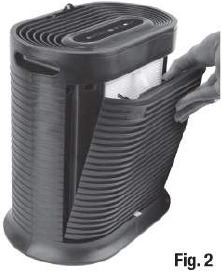 Este modelo de purificador de ar incorpora um sistema de limpeza de 2 estágios para ajudar a limpar o ar que passa pelo filtro na unidade (Fig. 1).