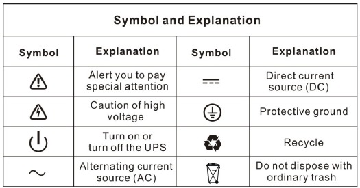 A seguir estão exemplos de símbolos usados no UPS ou acessórios para mostrar informações importantes: