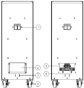 - O UPS gera uma corrente de fuga superior a 3,5 mA. A corrente de fuga da carga deve ser adicionada à do UPS no fio de aterramento de proteção.