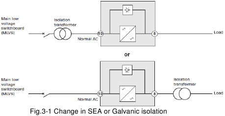 Os arranjos neutros são alterados apenas se houver um transformador de isolamento ou quando o UPS opera com um neutro que está desconectado a montante.
