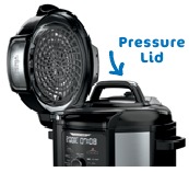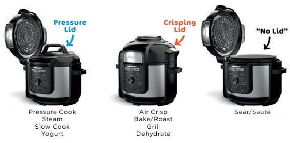 Ficamos felizes que você tenha perguntado. O design de 2 tampas permite cozinhar sob pressão e crocante na mesma panela. Use ambas as tampas para desbloquear um mundo de deliciosas refeições TenderCrisp.