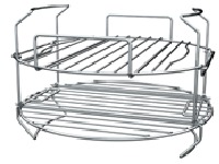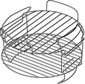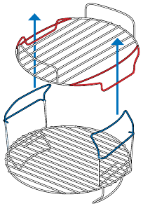 Note: Para facilitar a limpeza, cubra o rack com spray de cozinha antes de colocar os alimentos. - Solte a camada superior através das alças do rack reversível.