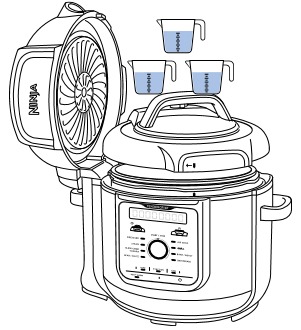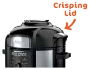 Ao mudar da tampa de pressão para a tampa de crocância após cozinhar sob pressão, esvazie a panela de qualquer líquido restante para obter melhores resultados de crocância.