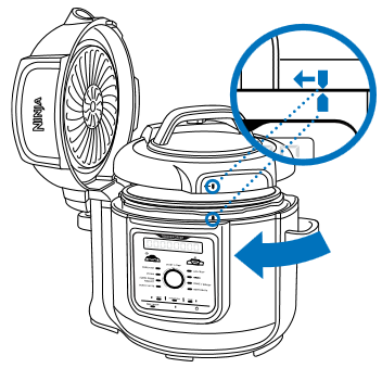 A Tampa de Pressão está travada quando ela se encaixa no lugar e o logotipo da Ninja está voltado para você.
