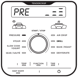 - FUNCTION (FUNÇÃO): Pressione FUNCTION (FUNÇÃO) e gire o dial START/STOP (INICIAR/PARAR) para escolher uma função de cozimento.