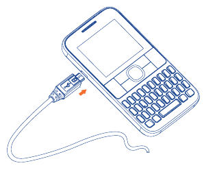 Ligue o carregador de bateria ao seu telefone e à tomada, respetivamente.