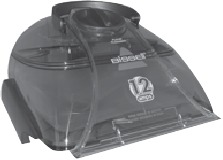 Solte o gatilho e faça uma passagem lenta para a frente e para trás sobre a mesma área para remover qualquer água suja residual e ajudar na secagem. Repita as passagens de limpeza até que a solução que está a ser puxada para cima pareça limpa. Continue as passagens sem pressionar o gatilho até que não consiga ver mais água a ser puxada para cima. - Retire o depósito da base da máquina levantando a pega de transporte do depósito. Transporte como um balde para um lava-loiça de serviço ou para o exterior, onde irá eliminar a água suja.