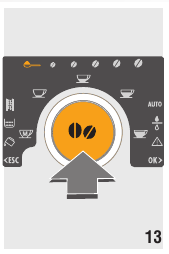- Botão de seleção: gire no sentido horário ou anti-horário até que corresponda à quantidade de café que sai