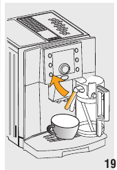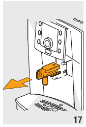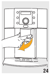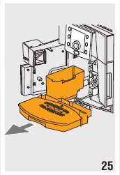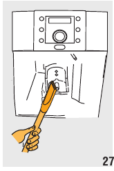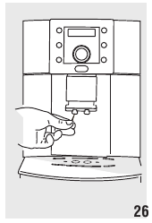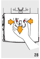 - Pressione os dois botões de libertação vermelhos para dentro e, ao mesmo tempo, extraia o infusor (fig. 28).
