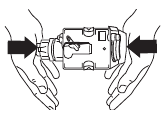 - Depois de inserido, certifique-se de que os dois botões vermelhos se soltaram.
