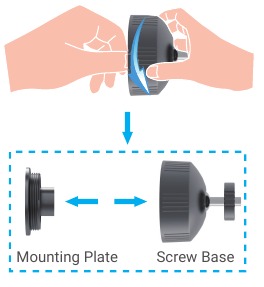 - Separe primeiro a placa de montagem da base do parafuso.