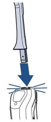 - Antes de cada utilização, mantenha o Solution Spray Trigger (Gatilho de Pulverização da Solução) premido durante 10 segundos para preparar o sistema com a solução de limpeza. As luzes LED acendem-se quando mantém o gatilho premido. Aparecerão bolhas na janela da escova cilíndrica quando a solução estiver a fluir.