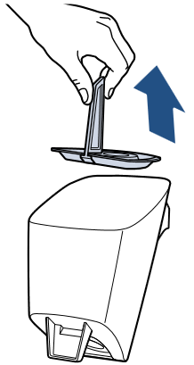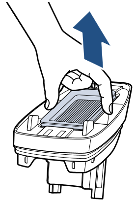 - Remova a parte superior do Dirty Water Tank (Depósito de Água Suja) agarrando nas áreas rebaixadas em cada lado do filtro e puxando para cima.
