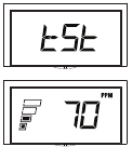 | Durante o Teste | Um único bipe será emitido após premir e manter premido o botão de teste ("Test"). Após o bipe único, um padrão de 4 bipes será emitido duas vezes. | O ecrã acende-se e mostra "tst". Vários níveis de ppm de CO também são exibidos e o nível de alarme é mostrado a aumentar. | ![]() |