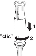 - Insira o eixo do liquidificador no corpo do liquidificador e gire no sentido anti-horário para travar no lugar.