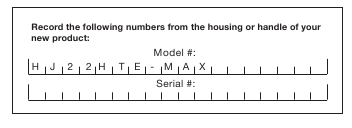 Ao entrar em contacto com a empresa ou encomendar peças novamente, precisará fornecer o modelo e os números de série do seu produto. Estes são encontrados no autocolante afixado na caixa ou na pega do seu corta-sebes elétrico. Copie estes números para o espaço fornecido abaixo.