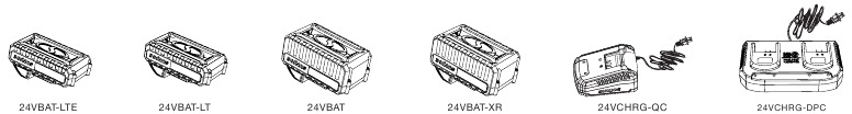 - O carregador rápido 24VCHRG-QC (vendido separadamente) e o carregador de porta dupla 24VCHRG-DPC (vendido separadamente) também estão equipados com luzes indicadoras de carregamento adicionais que indicarão o estado do carregamento.