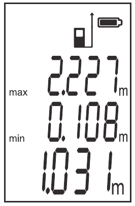 , em seguida, faça a próxima medição de distância única. O resultado do cálculo será mostrado na linha principal no visor. As próximas medições também serão adicionadas/subtraídas ao/do próximo resultado de medição.
