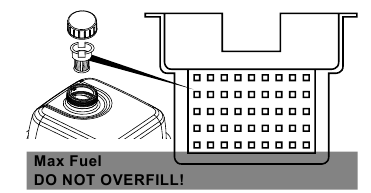 Encha o depósito numa área bem ventilada, longe de fontes de ignição. Se o motor estiver quente devido à utilização, desligue-o e espere que arrefeça antes de adicionar combustível. Não fume. - LUBRIFICAÇÃO:
