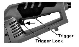 - Aperte o gatilho (Trigger) para ligar a serra (Saw). Para parar a serra (Saw), solte o gatilho (Trigger).