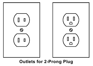 - As ferramentas com isolamento duplo podem ser utilizadas em qualquer uma das tomadas de 120 volts mostradas na ilustração anterior. (Ver Tomadas para ficha de 2 pinos.)