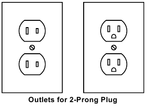 - As ferramentas com isolamento duplo podem ser utilizadas em qualquer uma das tomadas de 120 volts mostradas na ilustração anterior. Tomadas para ficha de 2 pinos (Ver Tomadas para ficha de 2 pinos.)