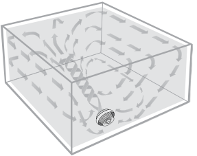 - Defina a velocidade desejada e aguarde alguns minutos para que seja estabelecido um padrão de fluxo de ar. Podem ser estabelecidos diferentes padrões de fluxo de ar alterando a localização, o ângulo e a velocidade. Ajuste até atingir o nível de conforto desejado.