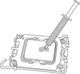 - Aplique uma camada uniforme e fina de massa térmica na superfície da CPU instalada